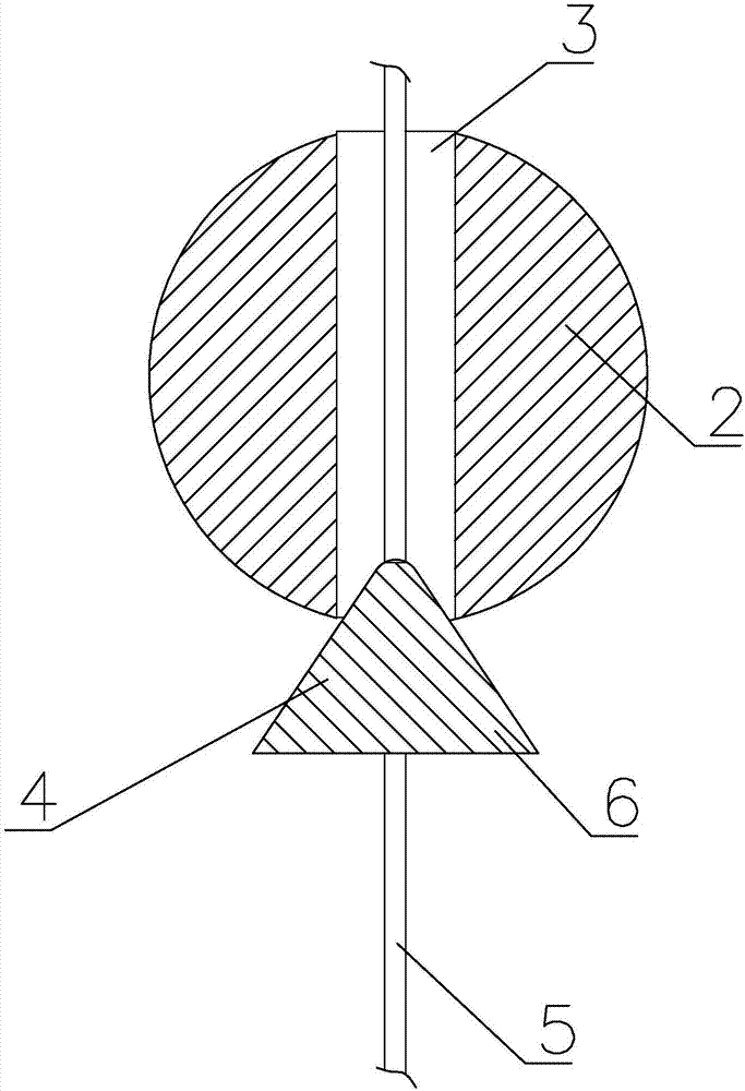 所述擋(dǎng)體6呈錐形結構設(shè)置,當繩索5受力作(zuò)用時,錐形結構設(she)置便于擋體6的卡(kǎ)于對應通孔3内,起(qi)到導向作用,使用(yòng)效🌈果好。
