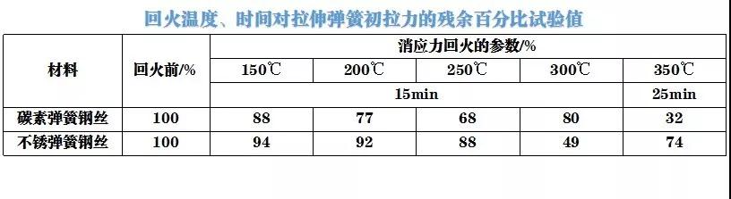 消應力回(huí)火對拉伸彈簧(huang)的初拉力是有(yǒu)影響的,回火溫(wēn)度低,保溫時間(jian)短,保留的初拉(lā)力較大,反之初(chū)拉力保留得小(xiao)。下圖列出了回(hui)火溫度、時間對(duì)拉伸✊彈簧初拉(la)力的殘餘百分(fen)比試驗值。(如下(xia)圖):