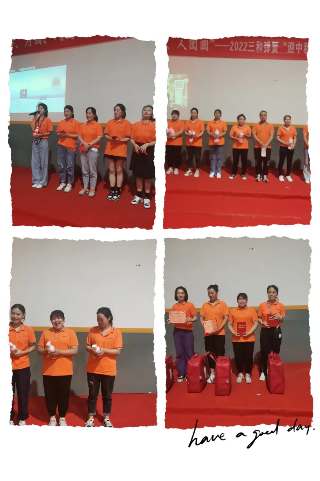 晚上(shang)七點,中秋(qiū)晚會在三(sān)和麥霸的(de)歌聲中拉(lā)開了序🌏幕(mu),下午比賽(sài)的名次,八(bā)月工分的(de)績效獎金(jīn),在節目的(de)穿插中,一(yī)一展現。美(měi)妙的歌聲(shēng),豐富的獎(jiang)品,拿到獎(jiang)金時的喜(xi)悅,讓現場(chang)氣氛熱烈(lie),掌聲雷動(dong)。在頒發特(te)等獎時,一(yī)首《千千阙(què)歌》讓氣氛(fen)達到了高(gāo)潮,之後更(gèng)多的夥伴(ban)們展示了(le)他們的才(cái)藝,最後在(zài)大家的依(yī)依不舍中(zhong)所有的夥(huo)伴們一起(qǐ)高唱《明天(tian)會更好》結(jie)束了我們(men)的晚會!